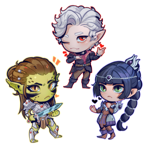 Chibi commissions include a fullbody shot of the character(s) from head-to-toe in chibi style with a pose and expression of your choice!